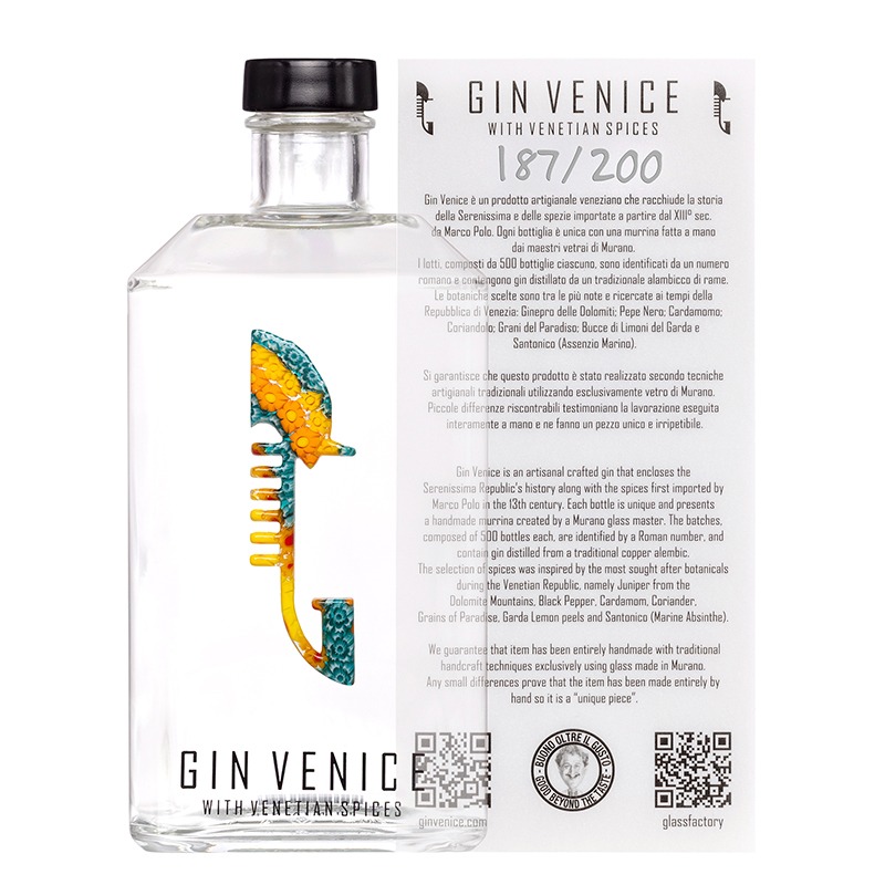 Una bottiglia da collezione, con una Murrina gioiello realizzata a mano dai Maestri Vetrai di Murano! In ogni bottiglia è presente il cartellino “sigillo di qualità“, che identifica la Murrina e la vetreria nella quale è stata realizzata.
