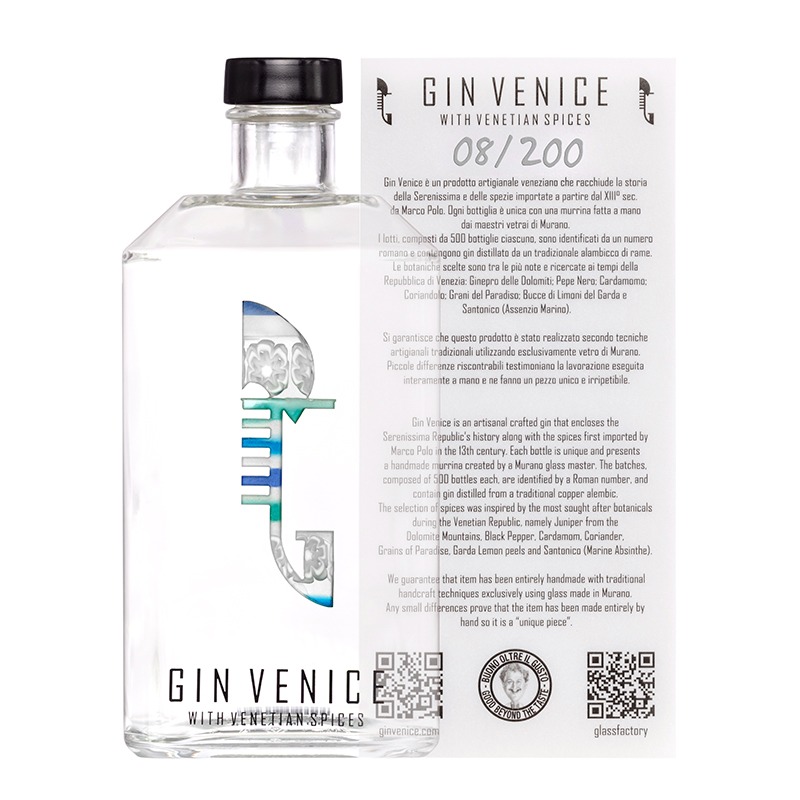 Ognuna è impreziosita da una murrina certificata e numerata dal Maestro del vetro muranese Davide Trebbi, che ha condiviso con noi questo progetto. Una bottiglia da possedere e custodire come un pezzo autentico della storia della Serenissima – la stessa storia che è alla base del nostro distillato.